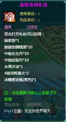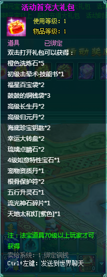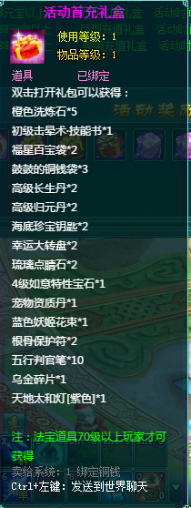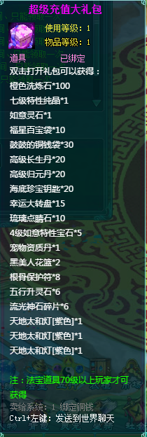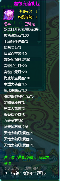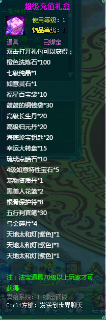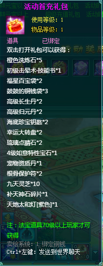 1、充值礼包中的法宝道具均为70级以上玩家才能获得。