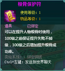 单项筋脉根骨70级 根骨提升符*3+根骨保护符*2