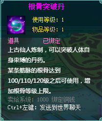 单项筋脉根骨110级 根骨突破丹*3+根骨提升符*10