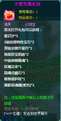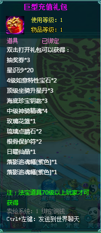 2、充值礼包中的法宝道具均为70级以上玩家才能获得。