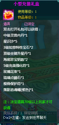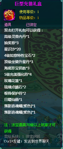 2、充值礼盒中的法宝道具均为70级以上玩家才能获得。