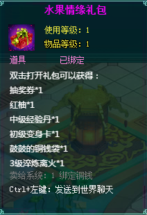 2、水果情缘礼包中的物品均为绑定道具,不可交易。