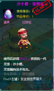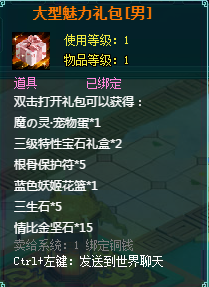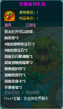 1、以上礼包中的物品除了宠物蛋外、其他全为绑定不可交易。