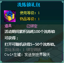 每累计消耗100个洗炼锁 可返还1个洗炼锁礼包