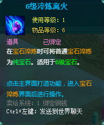 成功淬炼1颗6级宝石,可额外获得:5级淬炼离火*1