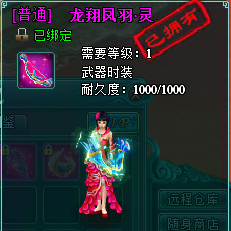 武器-龙翔凤羽(主职业) | 累计充值达到2W元宝 | 紫色 |
