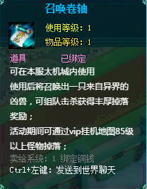 1、召唤卷轴只会在活动期间于vip挂机地图中85级以上怪物有掉落,均为绑定;