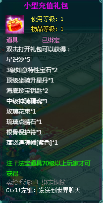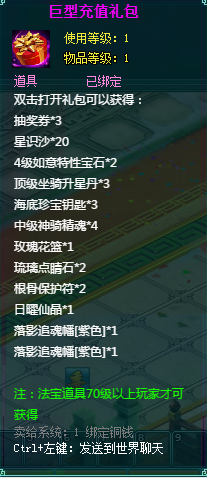 2、充值礼包中的法宝道具均为70级以上玩家才能获得。