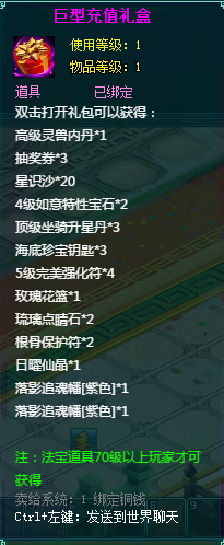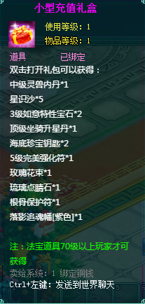 2、充值礼盒中的法宝道具均为70级以上玩家才能获得。