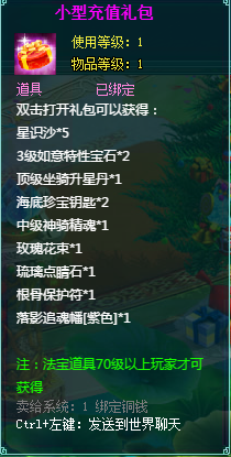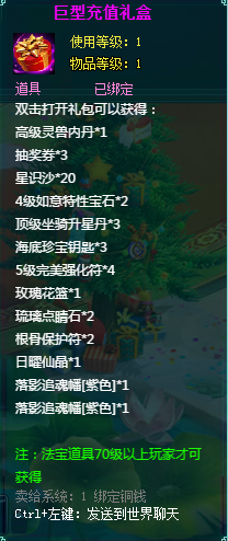 2、充值礼盒中的法宝道具均为70级以上玩家才能获得。