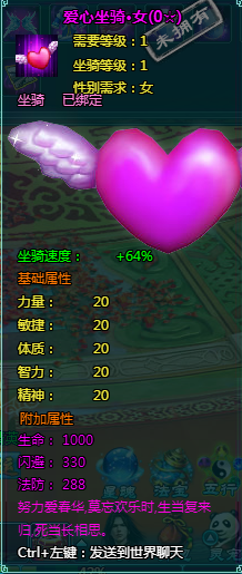 浪漫之夜,仙兽白虎将出现在龙雪域内,每天11:00,13:00,15:00,17:00,19:00,22:00仙兽白虎将携带活动道具等重宝降临龙雪域,击杀仙兽白虎即可获得丰厚的奖励。