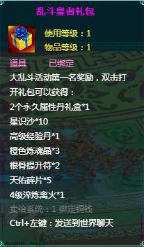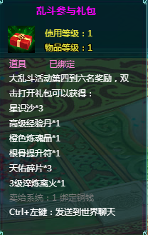 回归大礼包2:铜钱*80000、绑定元宝*50、天赐碎片*30、诛神碎片*20、50进阶保护符*3、百年玄铁*3、洗炼锁*30、宠物资质丹*1。