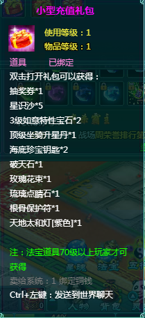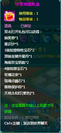 2、充值礼包中的法宝道具均为70级以上玩家才能获得。