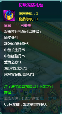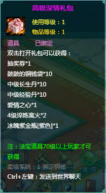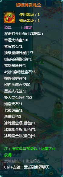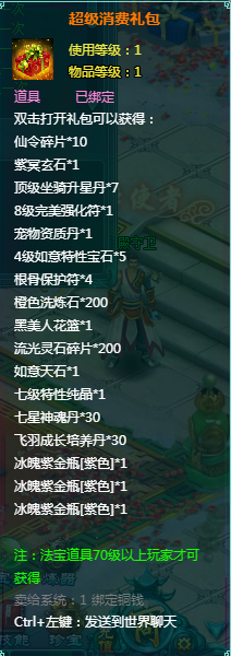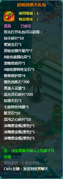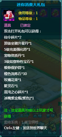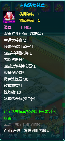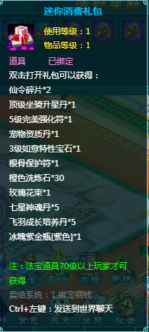 1、消费礼包中的法宝道具等级70级以上玩家才可获得。