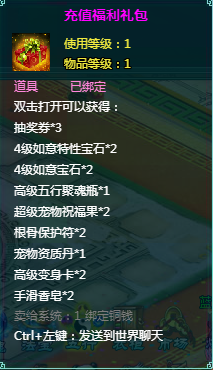 1888元宝以上 小型充值大礼包 活动时间、只能领取一次
