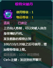 单项筋脉根骨110级 根骨突破丹*3+根骨提升符*10