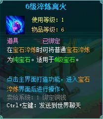 成功淬炼1颗6级宝石,可额外获得:5级淬炼离火*1