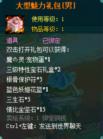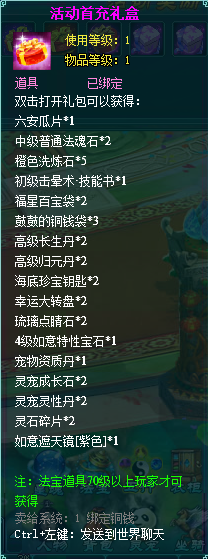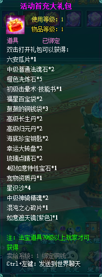 1、以上礼包中的物品除了宠物蛋外、其他全为绑定不可交易。