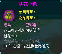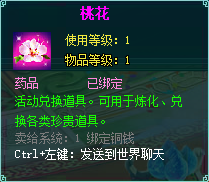 坐骑培养礼包:打开获得坐骑培养丹*3,有概率获得2~5个桃花
